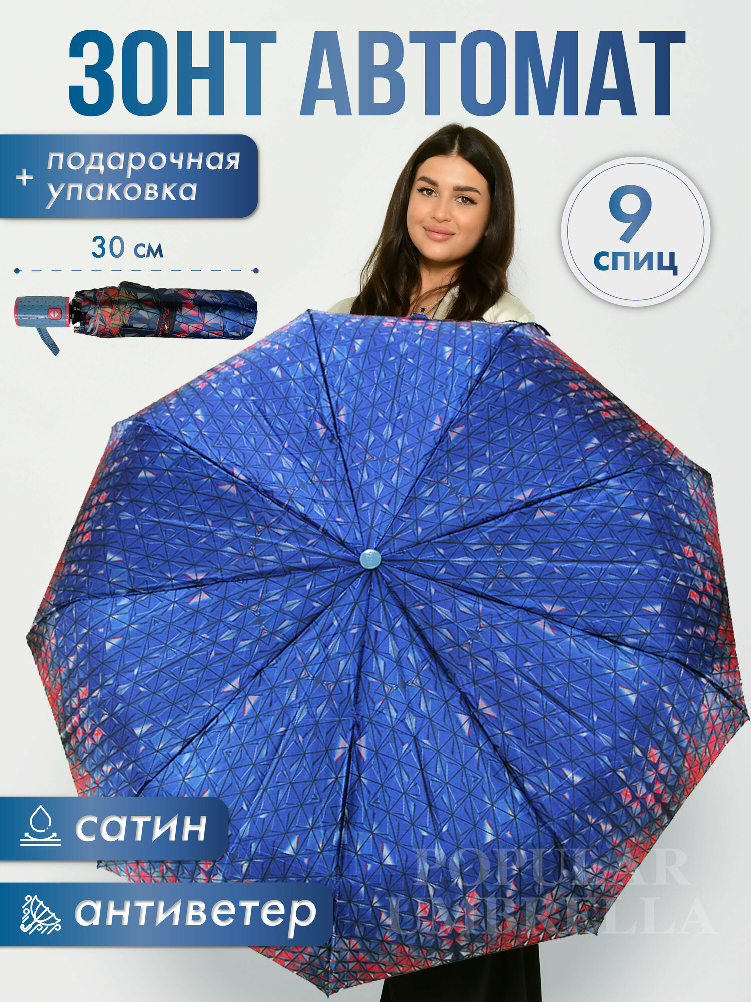 СохранитьЗонт женский автомат, зонтик взрослый складной антиветер 1288, синий1 интересное: