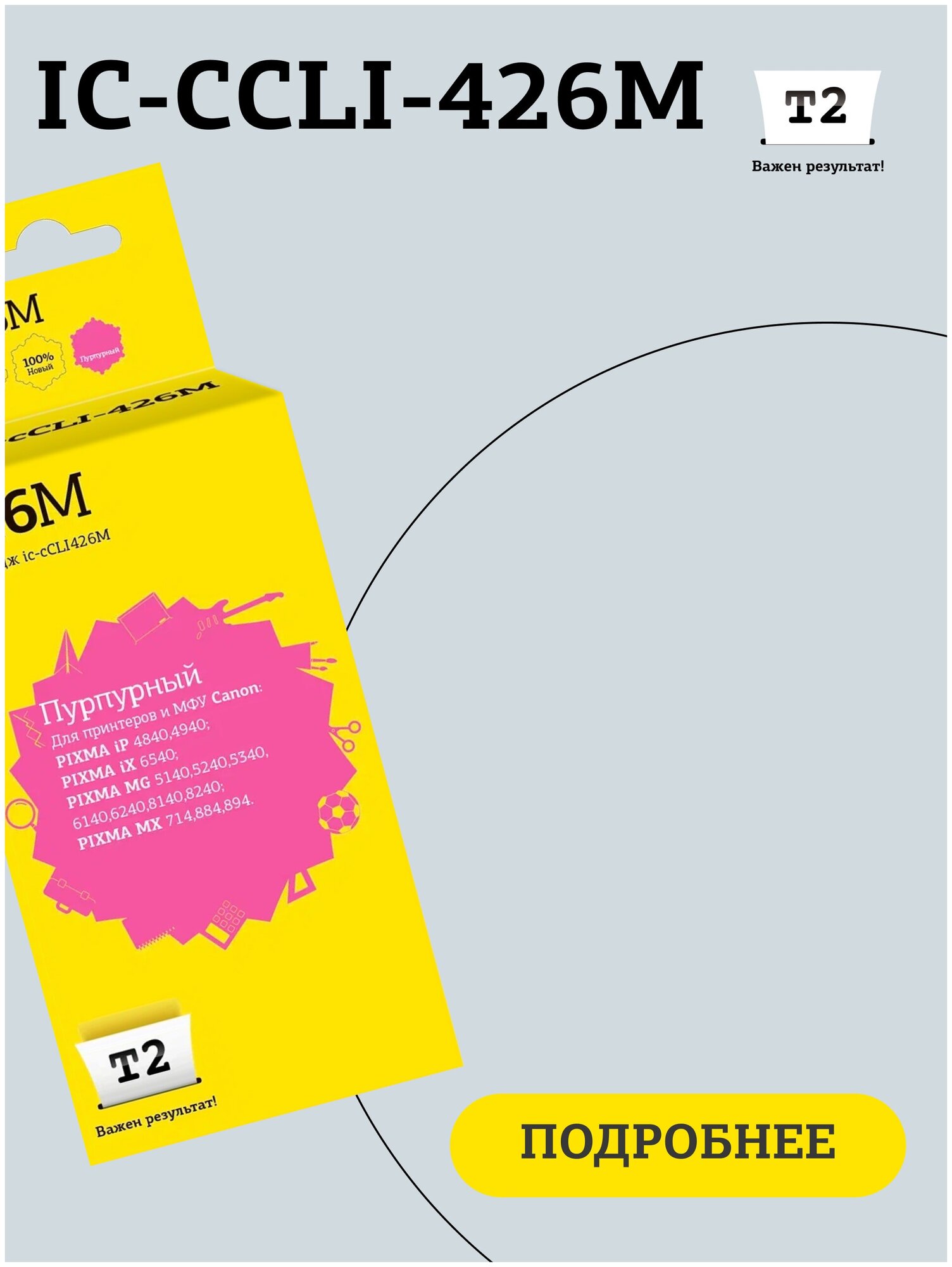 IC-CCLI-426M Картридж T2 для Canon PIXMA iP4840/iP4940/MG5140/MG5240/MG5340/MG6140/MG6240/MG8140/MG8240/MX884, пурпурный, с чипом