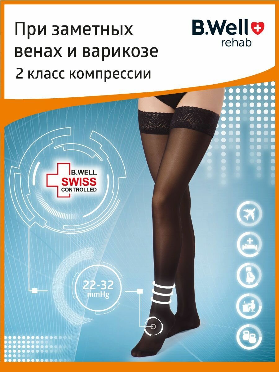 Чулки B.Well rehab JW-222 с ажурной резинкой, противарикозные, 2 класс, размер: 2, nero