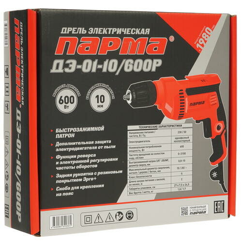 СохранитьДрель электрическая парма ДЭ-01-10/600P интересное: