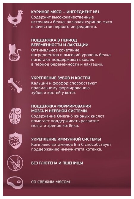 Мираторг Полнорационный сухой корм для беременных кормящих кошек и для котят в возрасте от 1 до 4 месяцев с куриной грудкой 1010024044 10 кг 59561