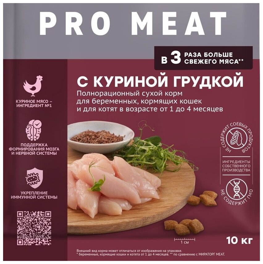 Мираторг Pro Meat корм для беременных, кормящих кошек и котят от 1 до 4 месяцев, с куриной грудкой 10 кг