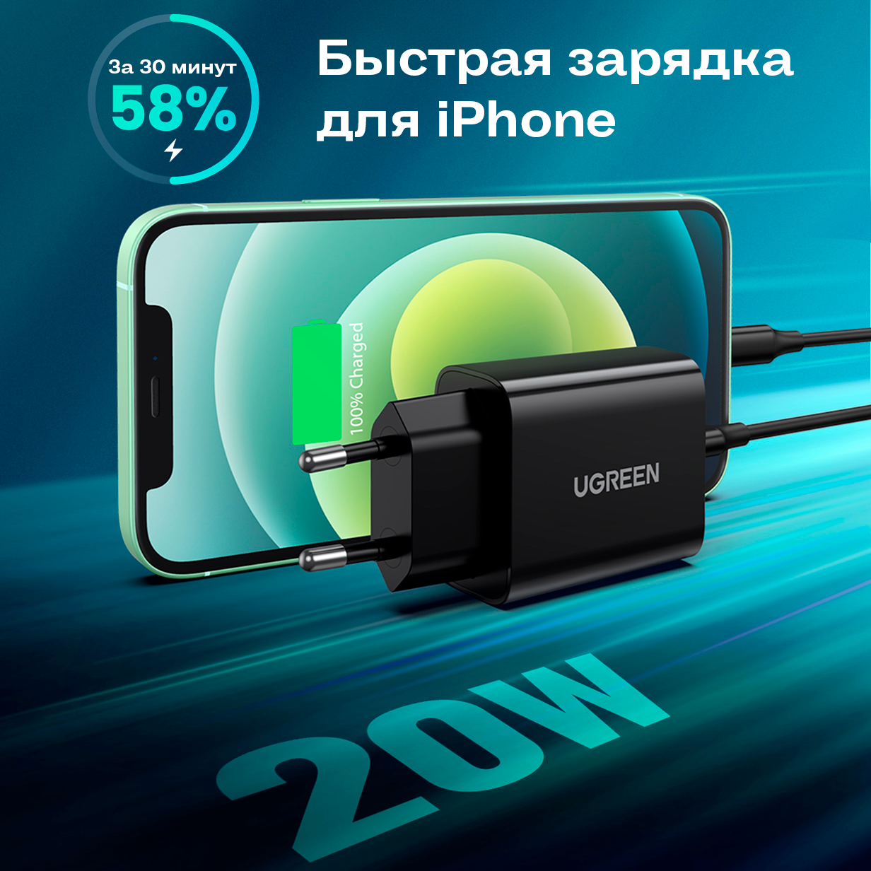 Сетевое з/у Ugreen CD137 (10191) Fast Charging 20W, черный (10191_) .