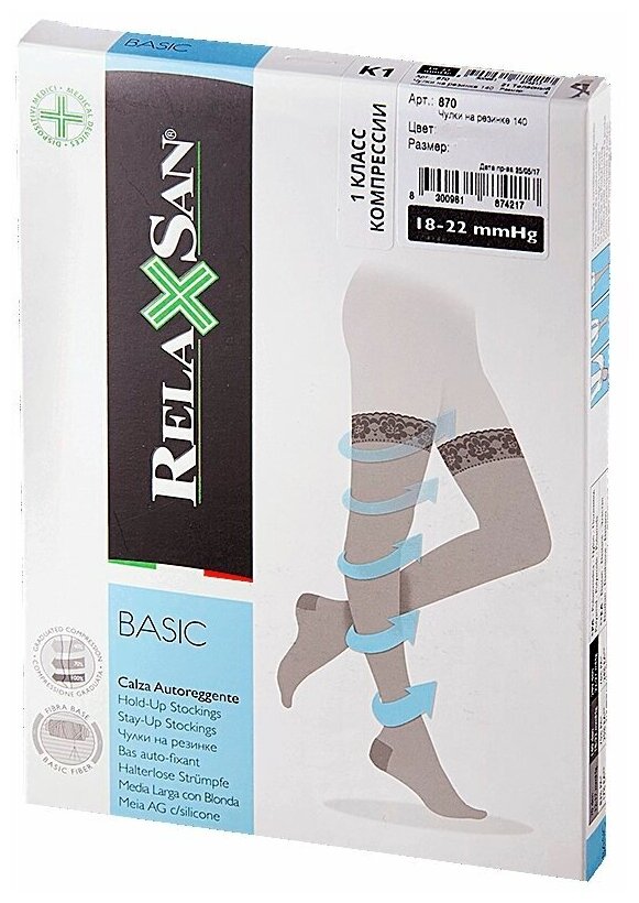 Чулки Relaxsan Basic Stay-Up 140 прозрачные на резинке 1-го класса компрессии, 870 (Женские, Закрытый, 2 размер, Черный, На резинке)