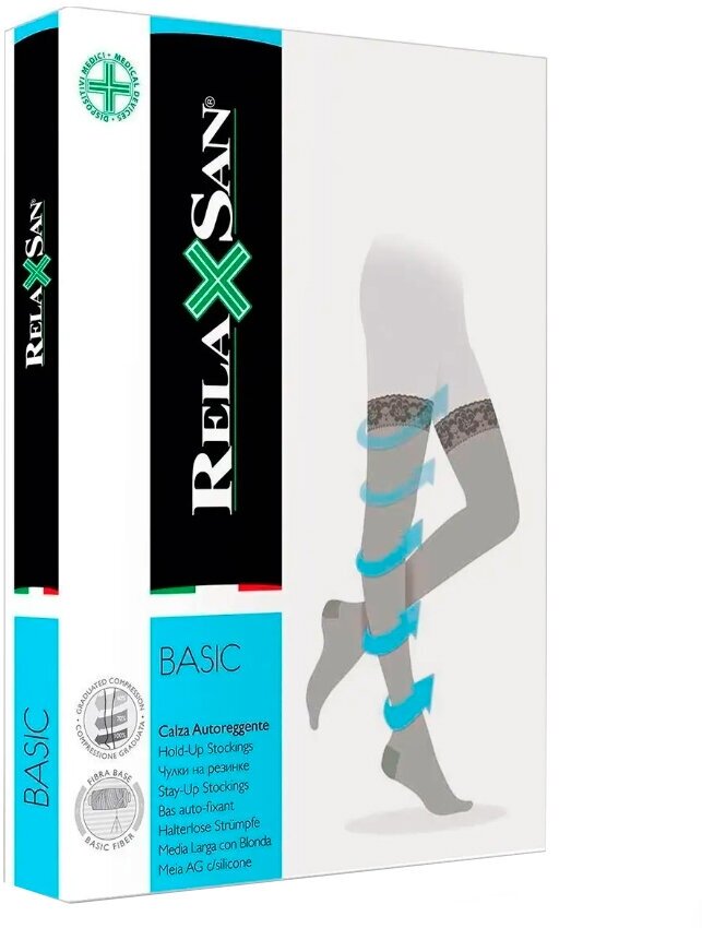 Чулки Relaxsan Basic Stay-Up 140 den 870 с ажурной резинкой на силиконовых лентах, противоварикозные, 1 класс, размер: 3, телесный