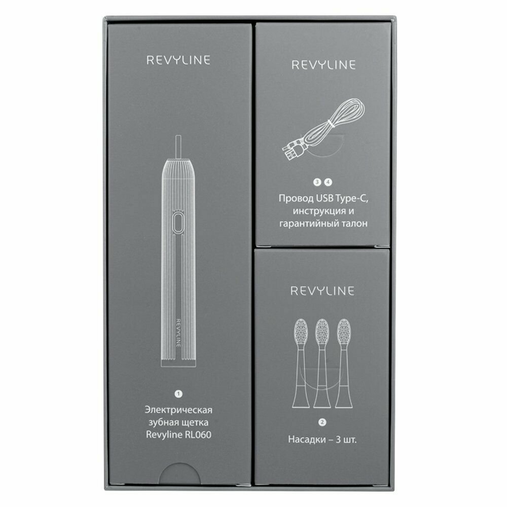 Электрическая зубная щетка Revyline RL 060, звуковая, 3 режима, 4 насадки в комплекте