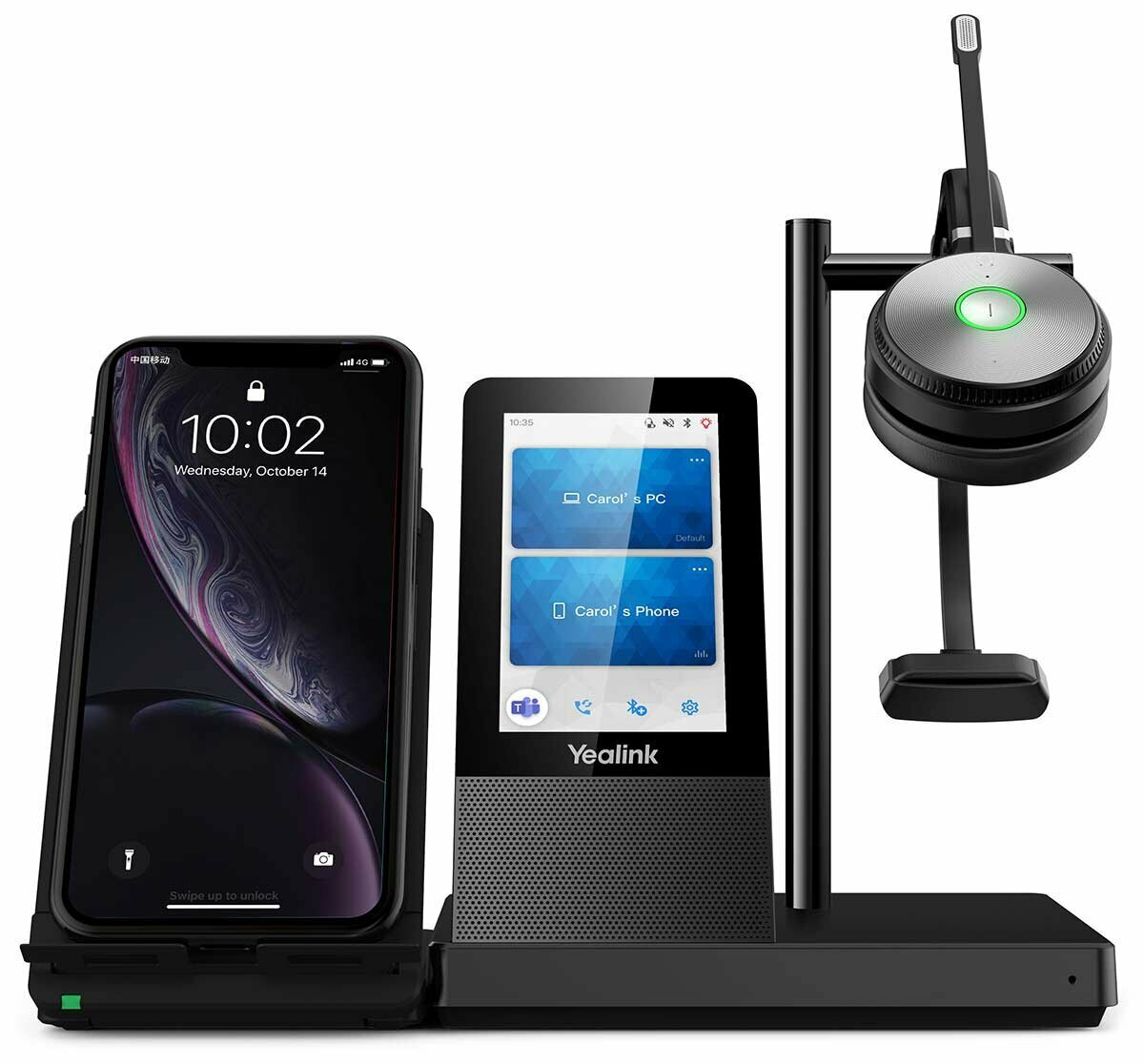 Гарнитура Yealink WH66 Mono Teams беспроводная, HD звук, 160м DECT, шумоподав, дисплей 4'', USB-хаб, Bluetooth