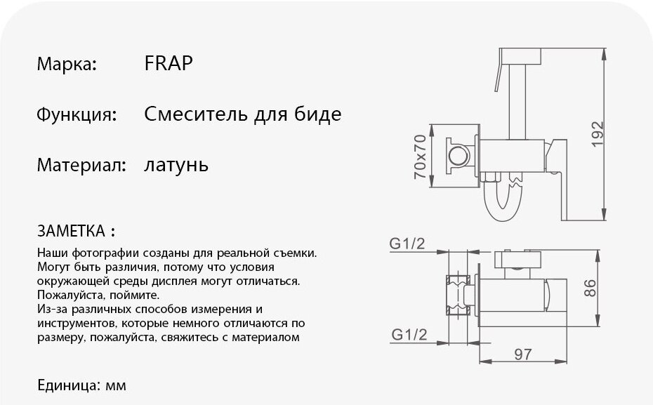 Frap квадратное смеситель для гигиенического душа F7506-6