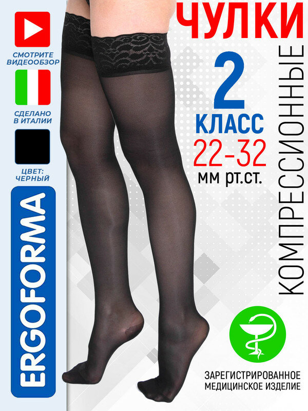 Чулки Ergoforma 221 компрессионные 2-го класса с силиконовыми вставками в области ажурной резинки (2 класс, Ergoforma, Чулки, 5 размер, Черный)