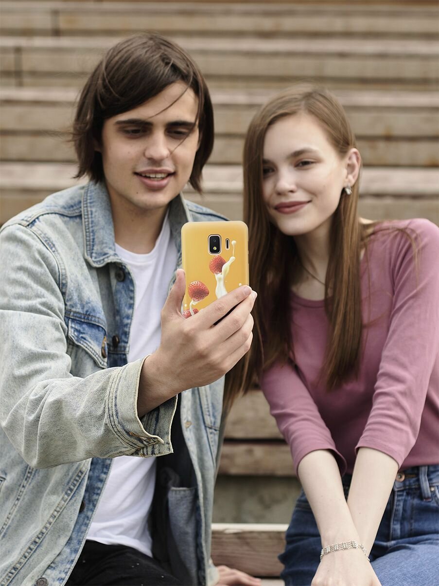 Силиконовый чехол на Samsung Galaxy J2 Core / Самсунг Джей 2 Кор с принтом "Клубника и сливки" интересное:
