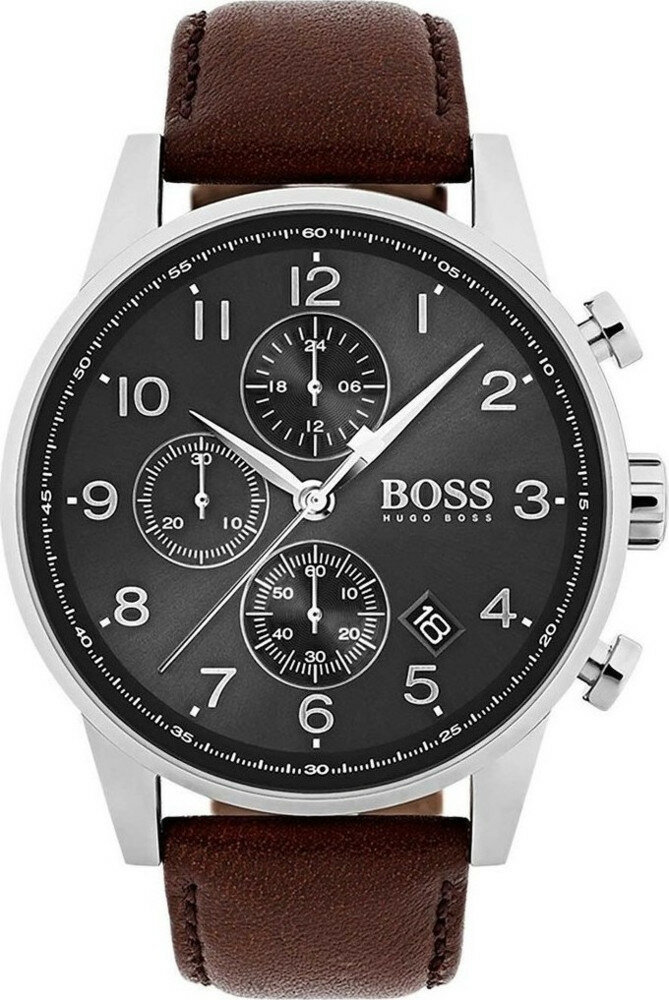 Наручные часы BOSS NAVIGATOR HB1513494, кварцевые, кожаный ремешок, серебряные