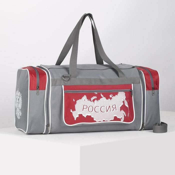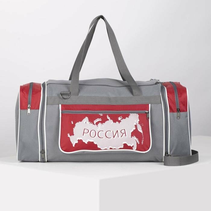 Купить Сумка спортивная на молнии, с увеличением, 3 наружных кармана, длинный ремень, цвет серый/красный
