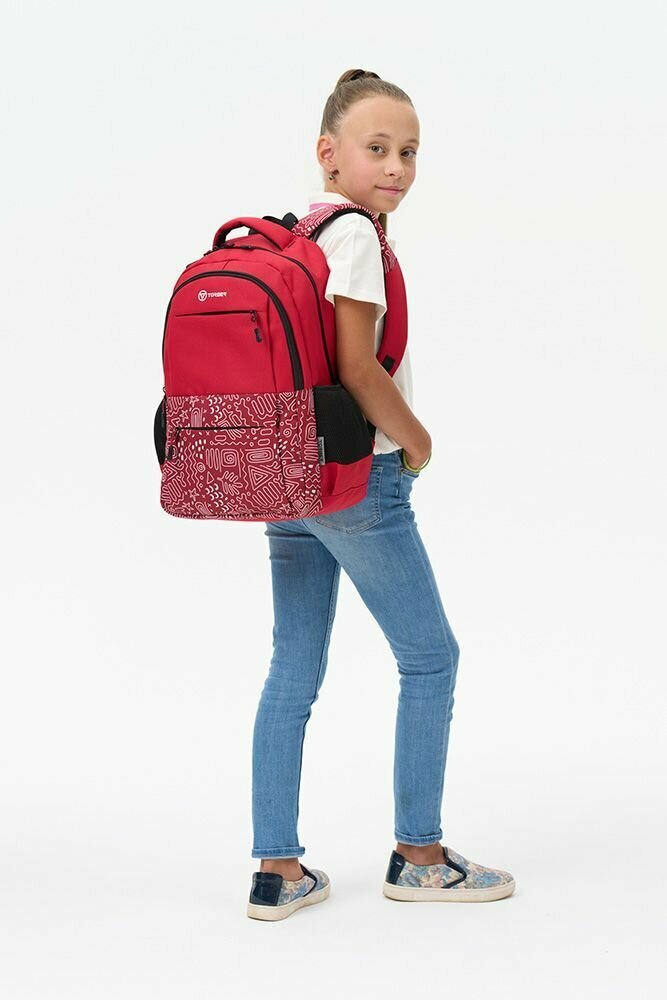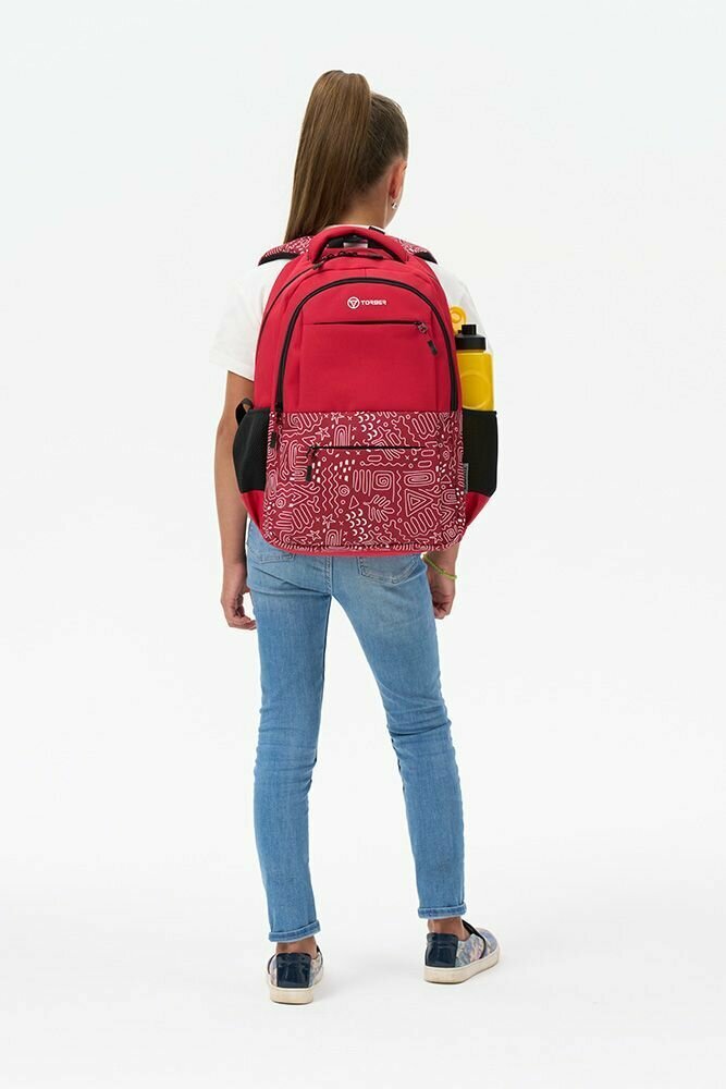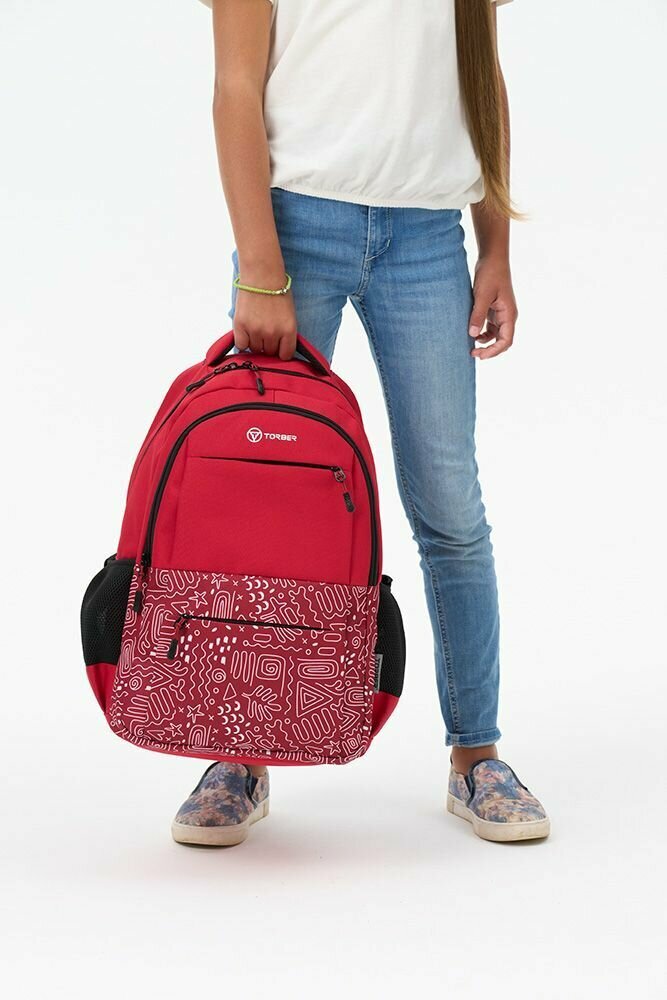 Купить Школьный рюкзак TORBER CLASS X T2602-22-RED, красный с орнаментом, полиэстер 900D, 45х30х18 см, 17 л