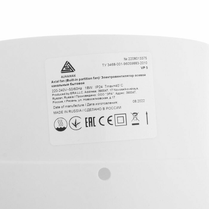 Вентилятор вытяжной AURAMAX VP 5 интересное: