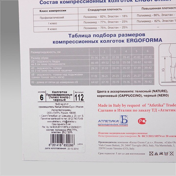 Купить Ergoforma / Эргоформа - компрессионные колготки (1 класс), размер №6, черные