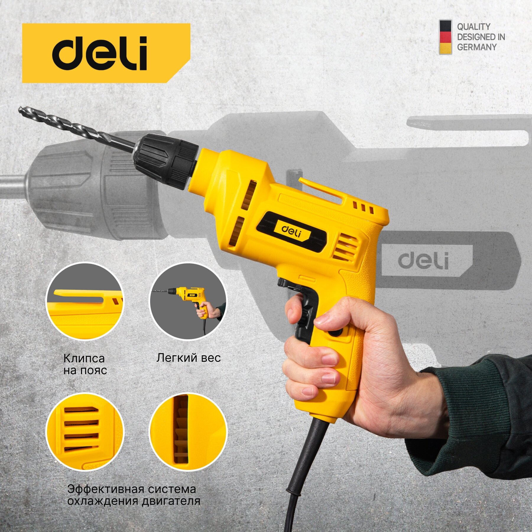 Дрель электрическая сетевая безударная Deli DL-DZ10-E1 (БЗП ,ф10мм,500Вт, 3000об/мин,реверс, картон)