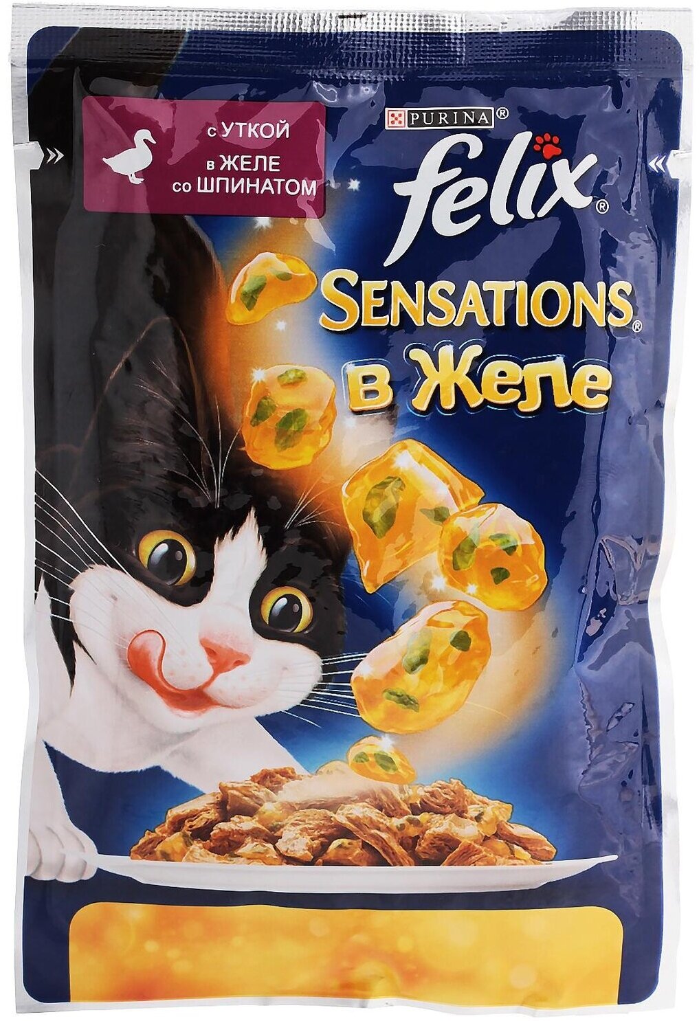 Влажный корм FELIX Sensations для кошек, утка/шпинат в желе, пауч, 85 г
