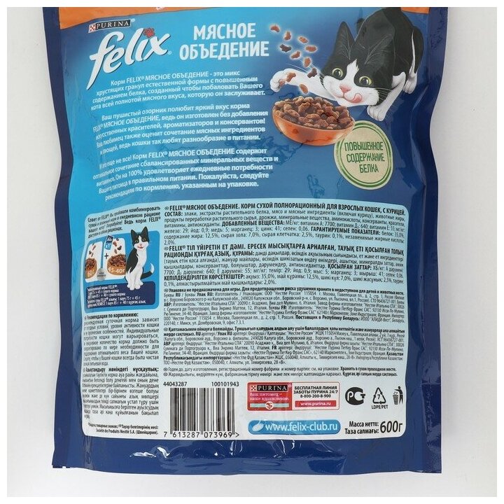 Сухой корм FELIX "Мясное объедение" для кошек, курица, 600 г