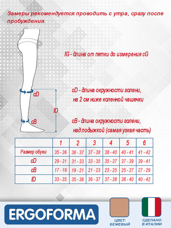Гольфы Ergoforma 311 противоварикозные, 1 класс, размер: 6, телесный