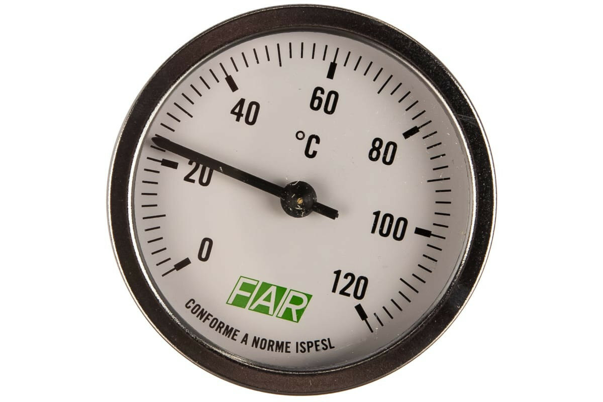 Термометр Far 0-120 °С, зонд 50мм, O 80 мм, торцевое соединение 1/2"