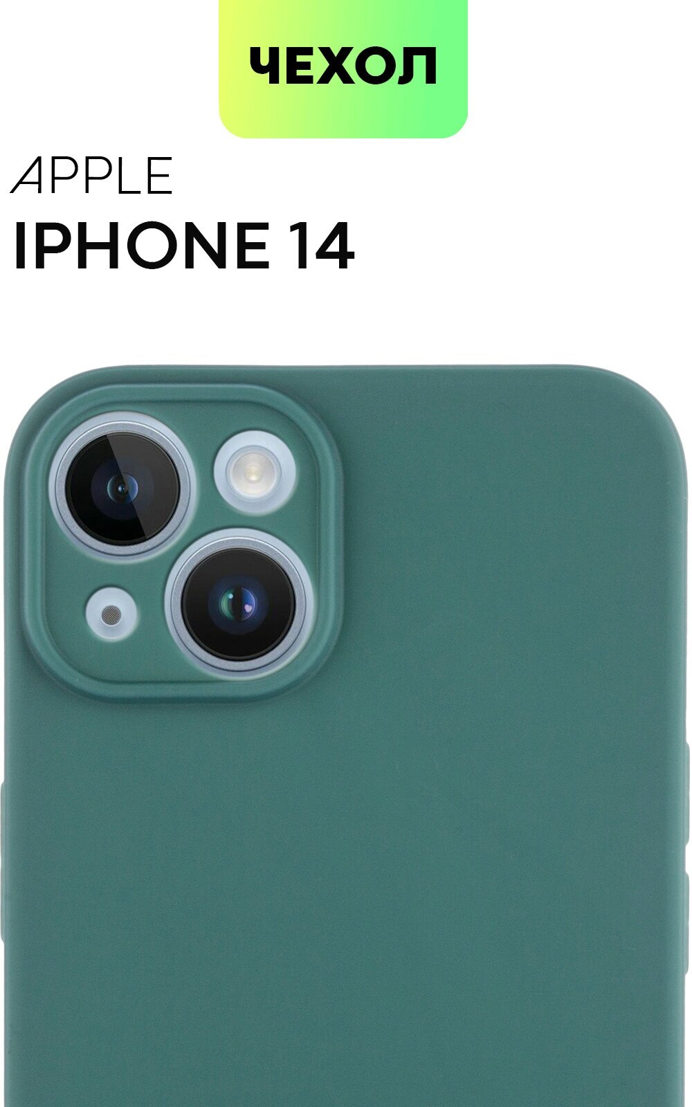 Купить BROSCORP/Силиконовый чехол-накладка для Apple iPhone 14 (Эпл Айфон 14) тонкая, с матовым покрытием и бортиком (защитой) модуля камер, темно-зелёная