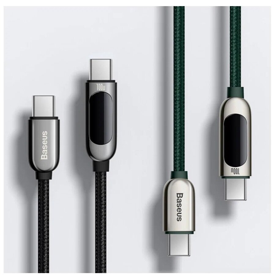 Кабель для USB-C BASEUS Display Fast Charging, Type-C - Type-C, 5А, 100W, 2 м, зеленый интересное: