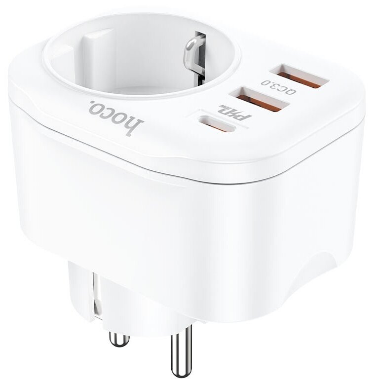 Сетевой фильтр hoco NS3 / 1 розетка 4000W / выходы 2xUSB QC3.0, 18W + Type-C PD20W / белый