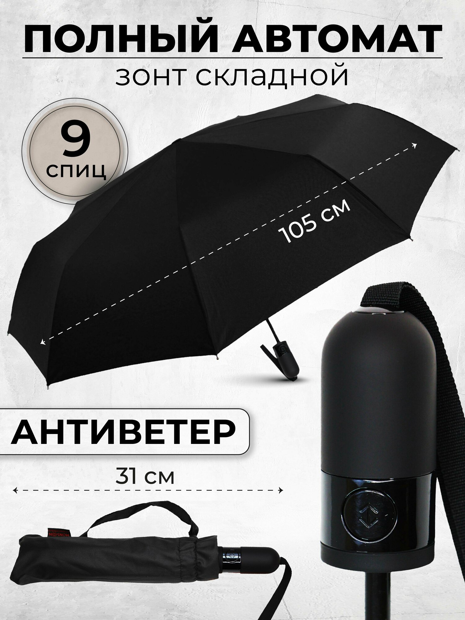 Мужской складной зонт Monsoon umbrella автомат 9001А/черный
