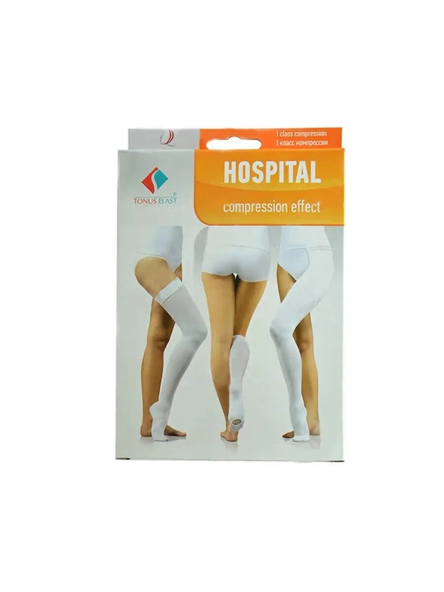 Чулки госпитальные Тонус Эласт 0403 Hospital антиэмболические 1-го класса компрессии, без мыска, белые (Унисекс, Открытый, Рост 1 (158-170 см), 4 размер)