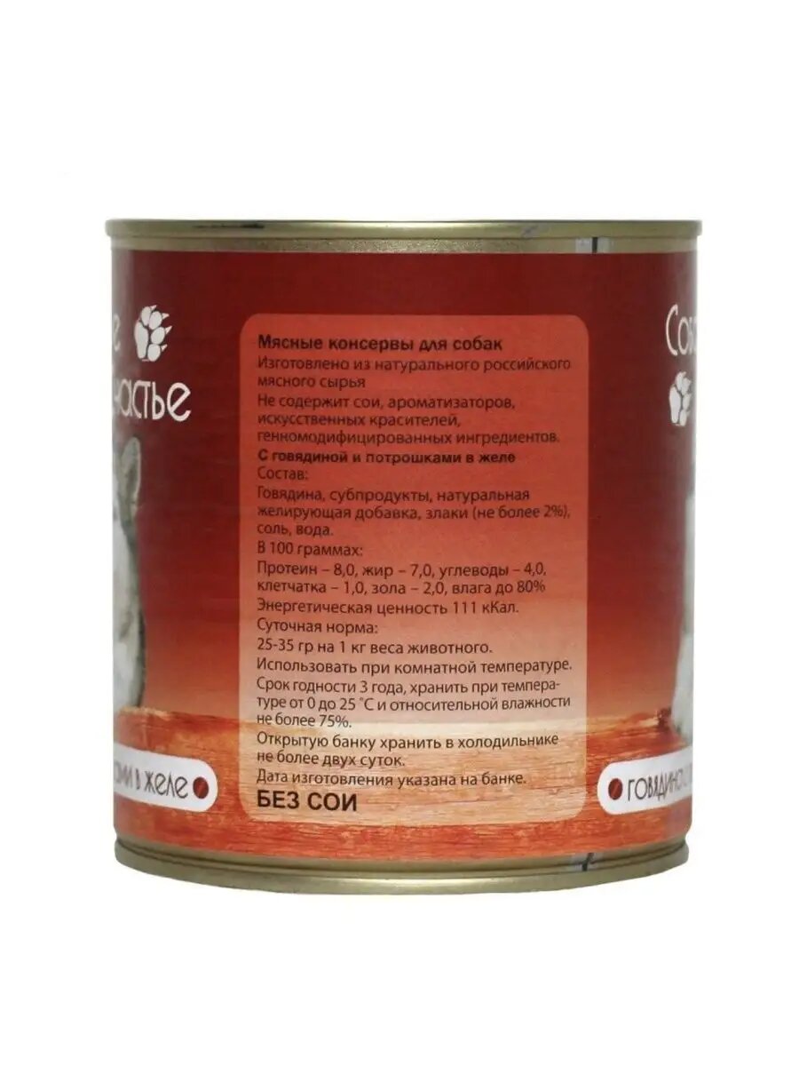 Собачье Счастье Консервированный корм для собак Говядина с потрошками в желе, 750 г, 2 шт