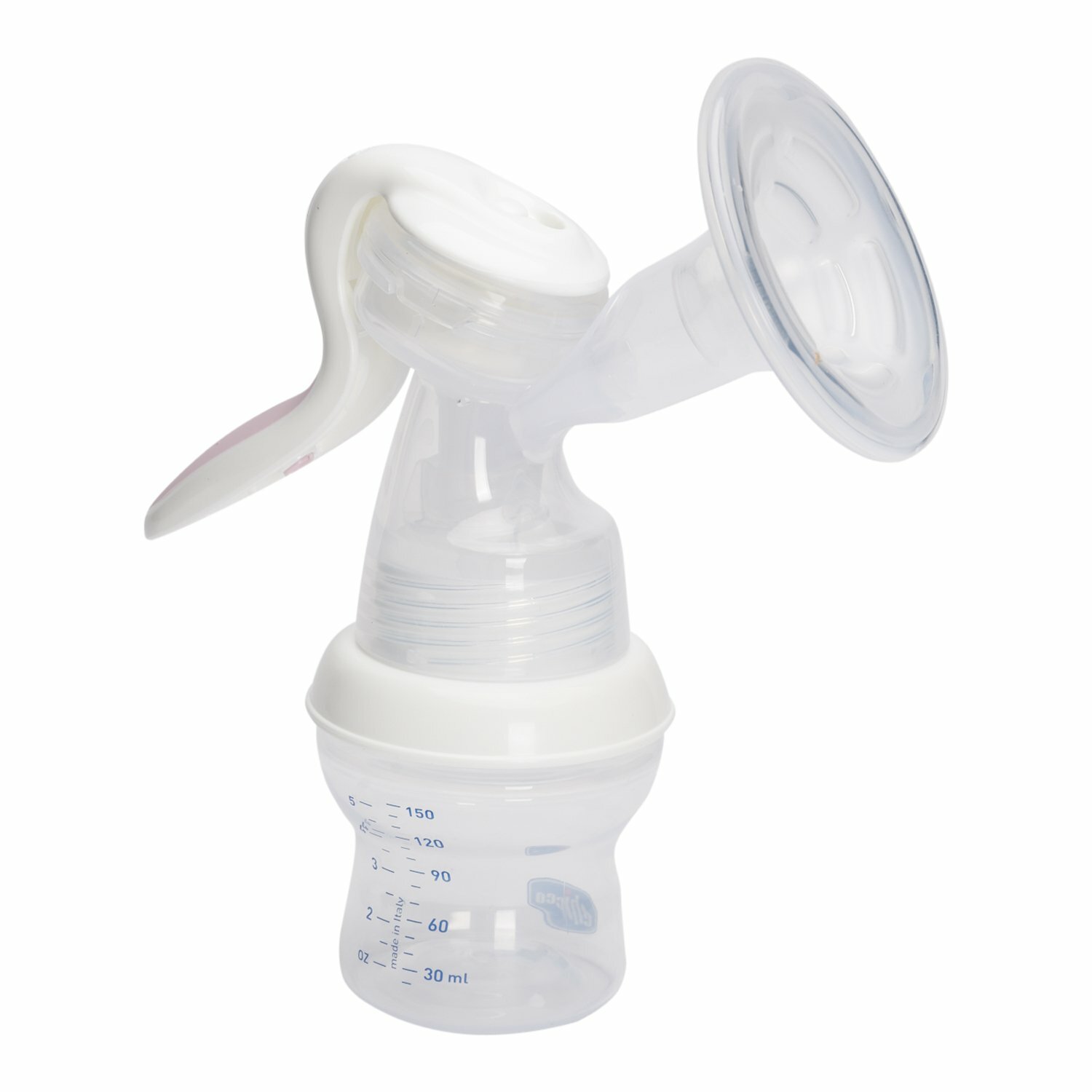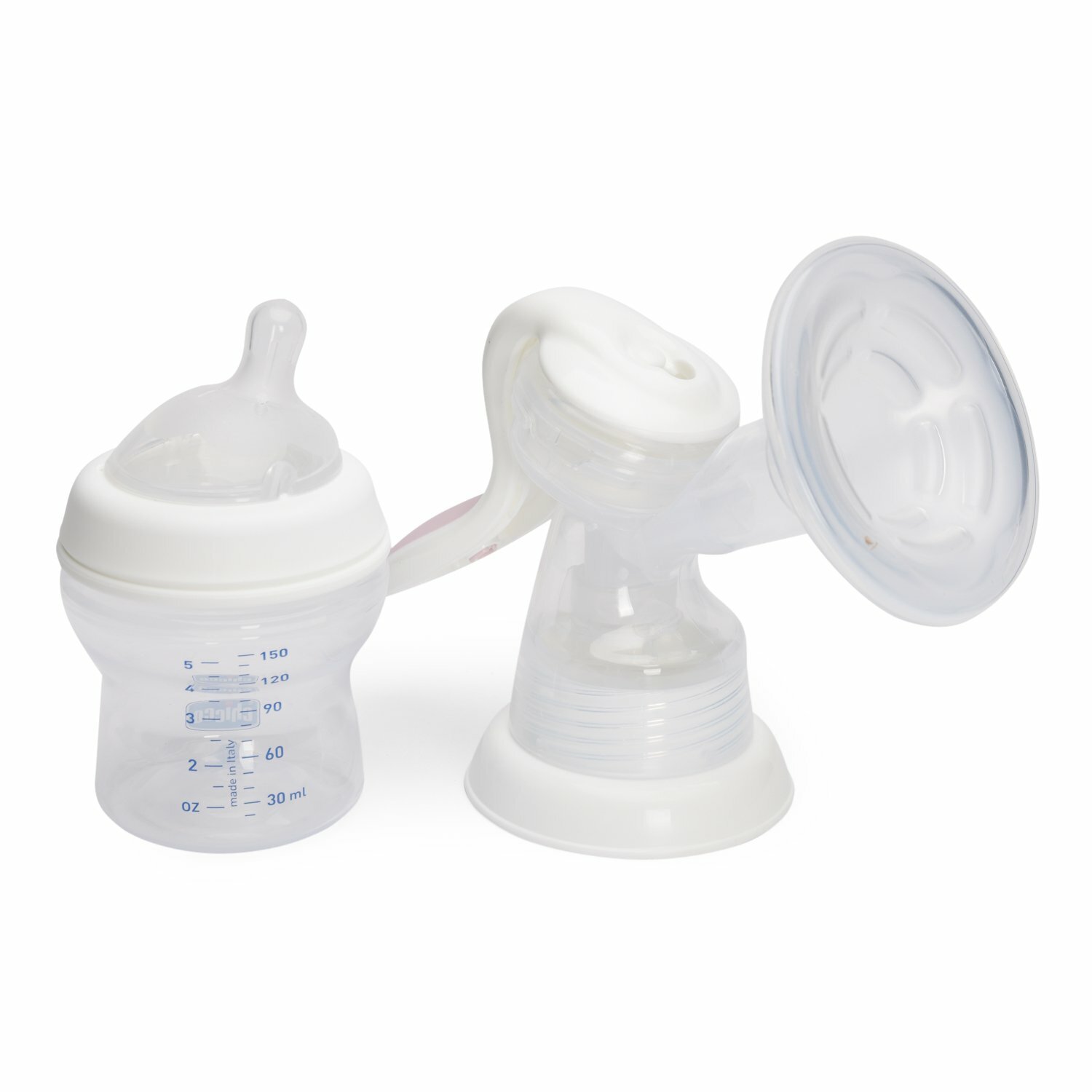 Молокоотсос ручной Chicco Natural Feeling механический бесшумный с бутылочкой 150 мл и силиконовой накладкой