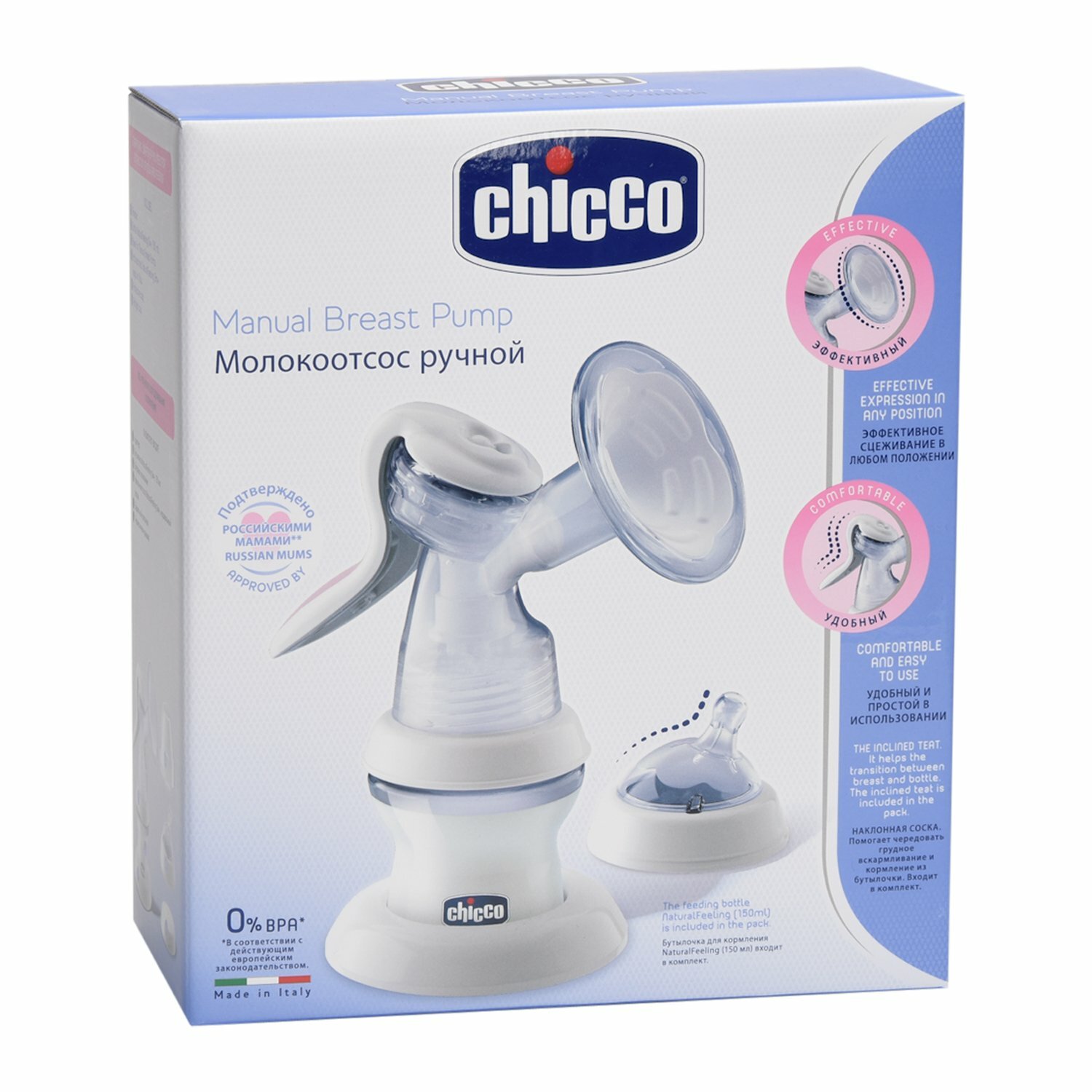 Ручной молокоотсос Chicco с бутылочкой Natural Feeling