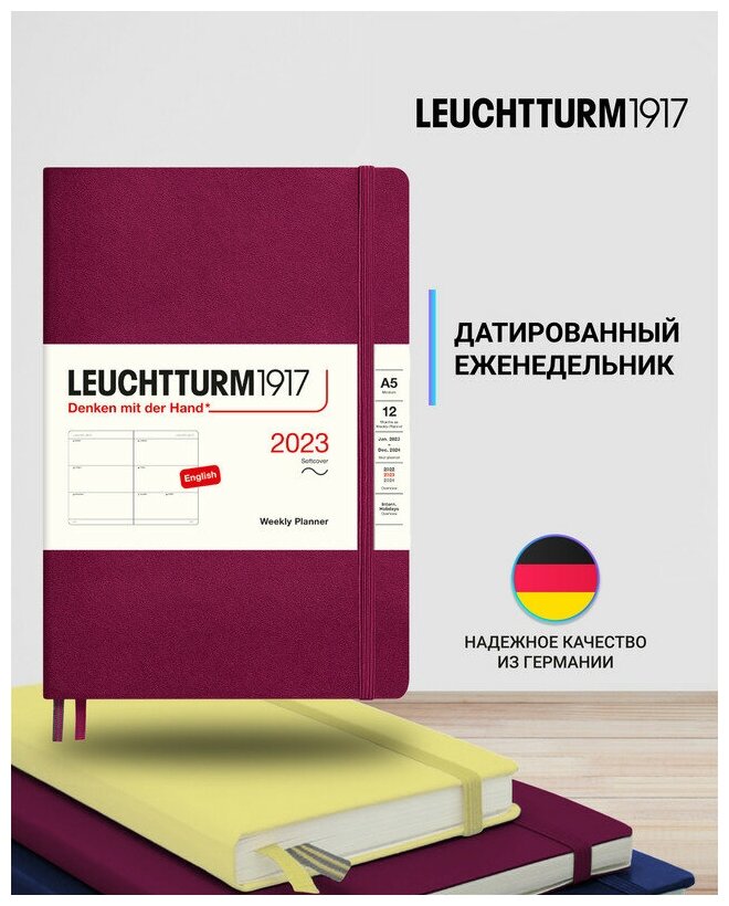 Купить Еженедельник-планер Leuchtturm1917 Medium A5 (14.5x21см.) датированный на 2023 год, 80г/м2 - 144стр., мягкая обложка, цвет: красный портвейн