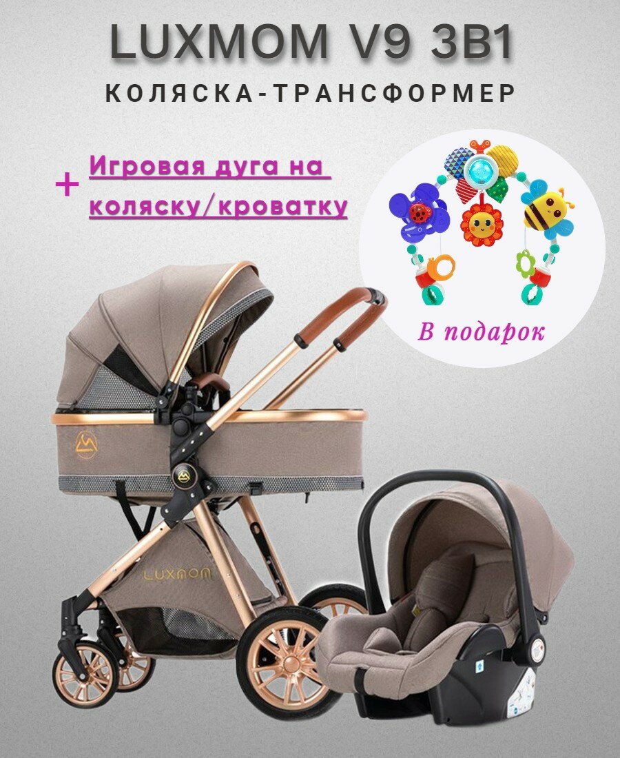 Купить Детская коляска трансформер 3 в 1 LUXMOM Bolina V9, коричневый