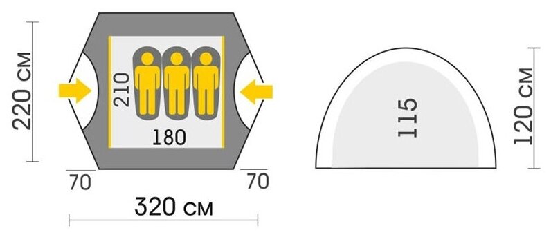 | Материал внутренней палатки | полиэстер (дышащий полиэстер) |