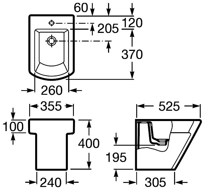 Биде напольное Roca Hall 357624000 с горизонтальным выпуском белый интересное: