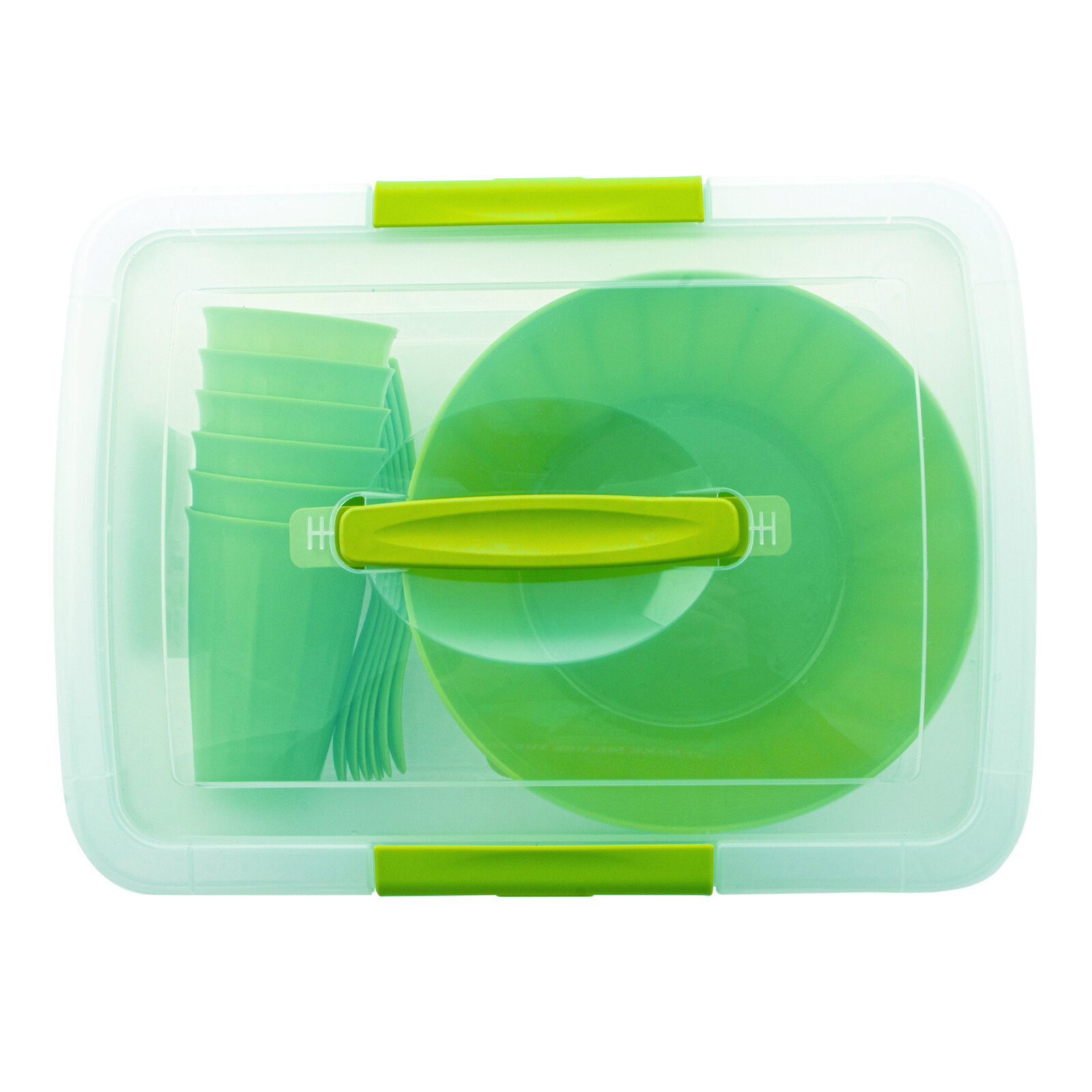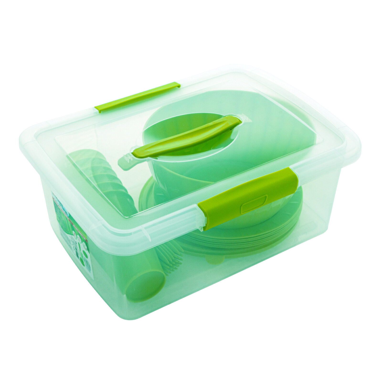| Комплектация | салатник с крышкой, тарелки, стаканы, вилки, контейнер с крышкой |