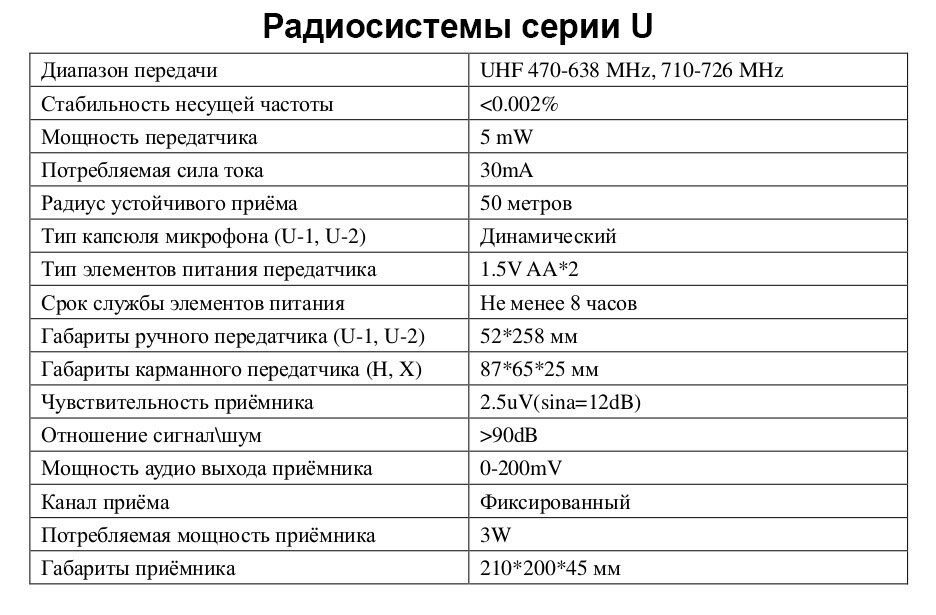 | Комплектация радиосистемы | микрофон |