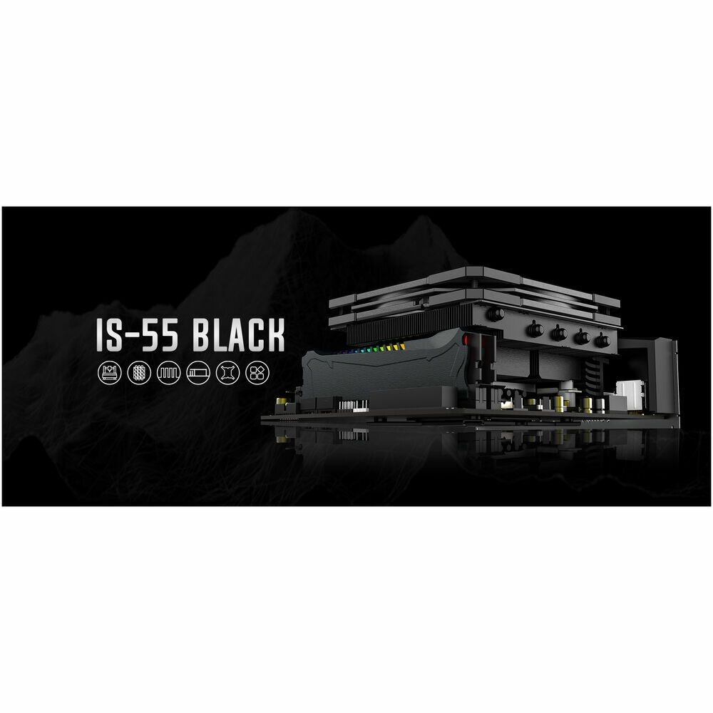 Cooler ID-Cooling IS-55 Black LGA1700/1200/115X/AM5/AM4 низкопрофильный высота 55mm (27шт/кор, TDP 1 .