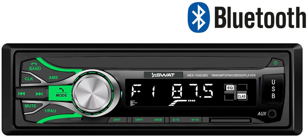 Ниже Вы можете прочитать отзывы на Автомагнитола SWAT MEX-1042UBG, 1 din, мощность 4x50Вт, Bluetooth, USB, SD, черная, ознакомится с подробными характеристиками, посмотреть интересные обзоры и фотографии на Автомагнитола SWAT MEX-1042UBG, 1 din, мощность 4x50Вт, Bluetooth, USB, SD, черная.