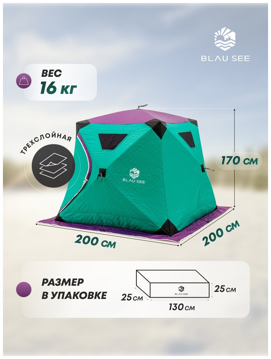 Палатка куб зимняя-летняя 3-х местная, ARCTICA 200 для зимней рыбалки / охоты / туристическая / кемпинговая / мобильная баня