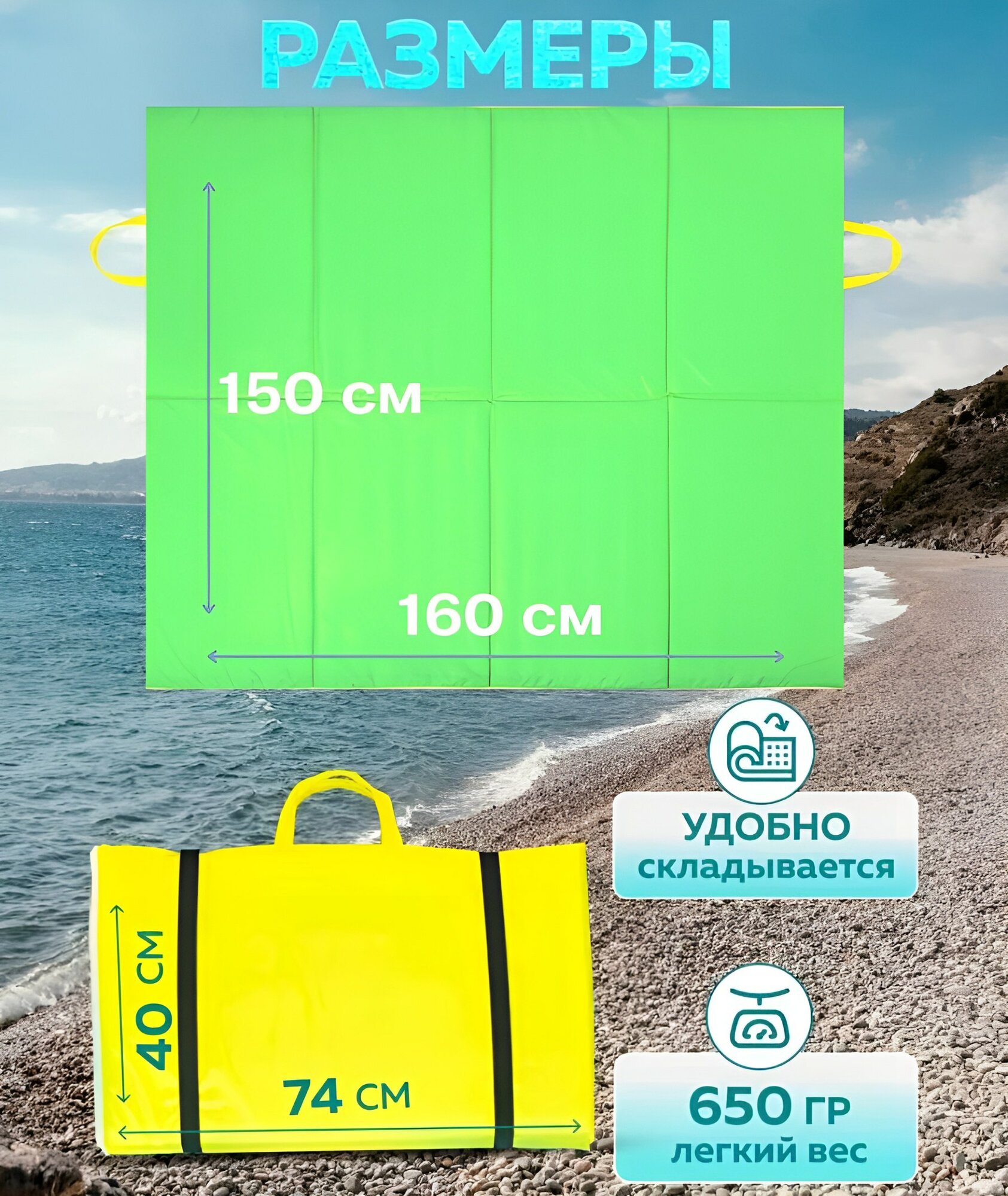 Купить Коврик пляжный складной 150*160 см для гальки и песка