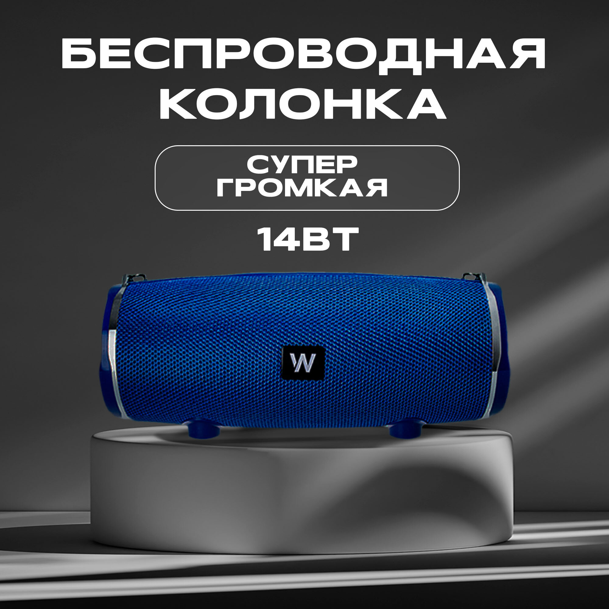 Беспроводная портативная колонка Bluetooth, WALKER, WSP-160, синяя, музыкальная переносная акустическая система блютуз для компьютера и телевизора