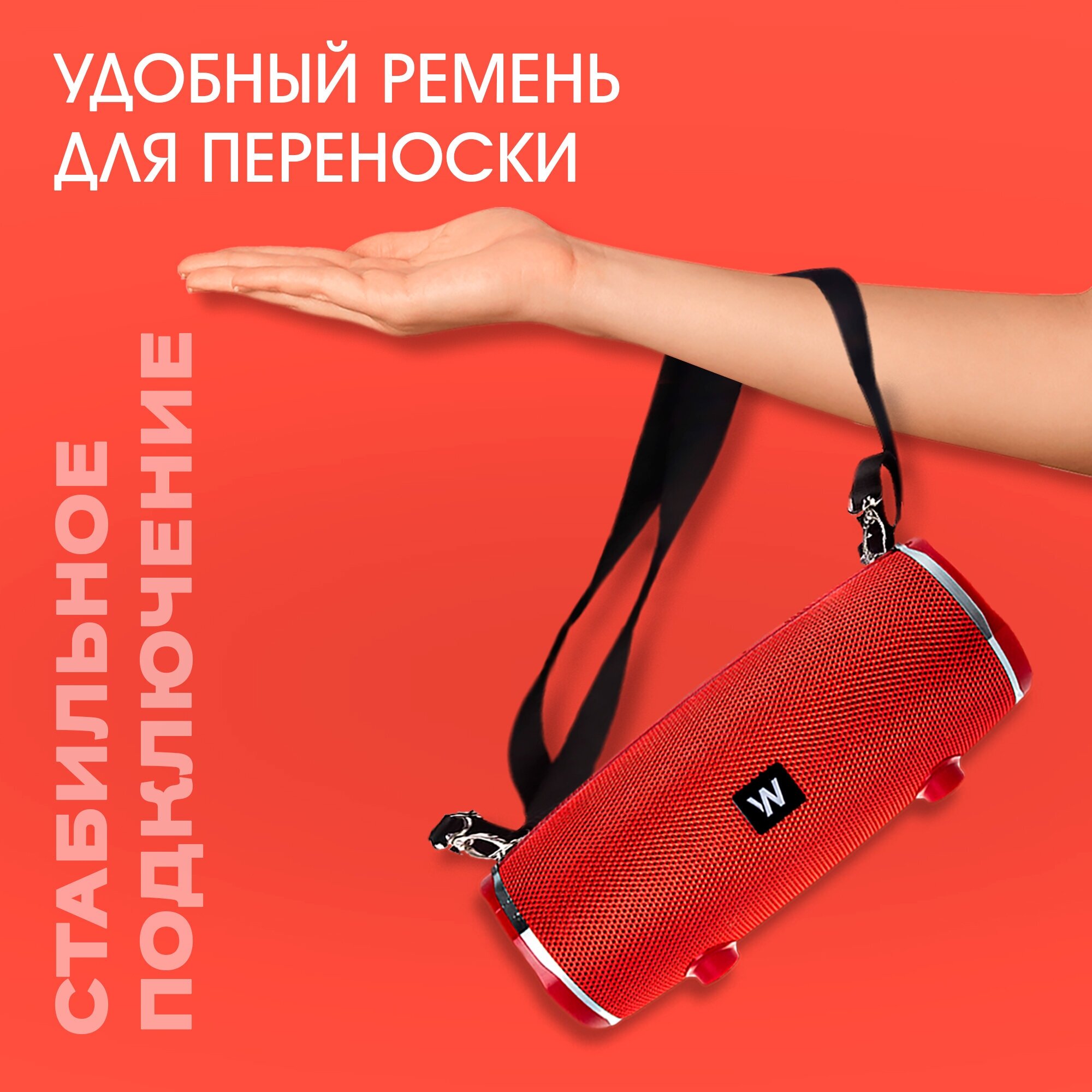 Беспроводная портативная колонка Bluetooth, WALKER, WSP-160, красная, музыкальная переносная акустическая система блютуз для компьютера и телевизора