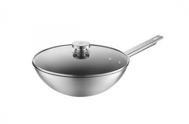 Сковорода-вок 30 см из нержавеющей стали с антипригарным покрытием и стеклянной крышкой, Zwilling Joy Plus, 66901-300