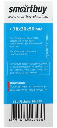 Smartbuy прожектор светодиодн. 10W(550lm) FL SMD LIGHT 6500K 6К 98x66x20,5 180-240V IP65 SBL-FLLight-10-65K (арт. 663477)