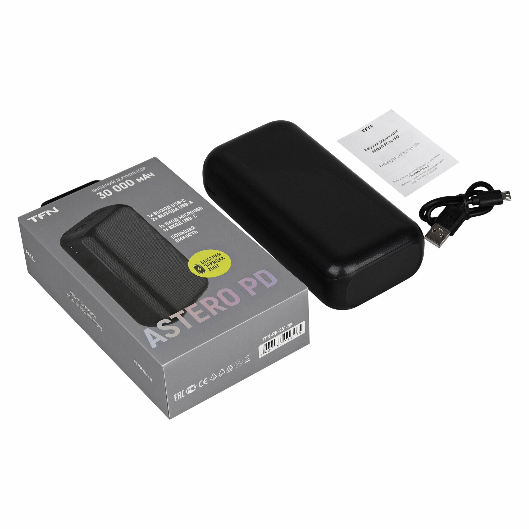 Внешний аккумулятор TFN 30.000 мач Astero 30 PD черный (TFNTFN-PB-251-BK)