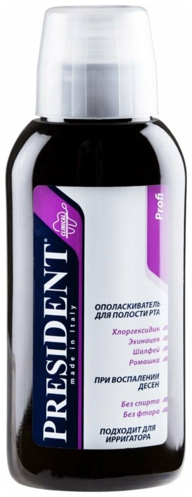Ниже Вы можете прочитать отзывы на Президент PROFI Ополаскиватель для рта Хлоргекседин 250мл, ознакомится с подробными характеристиками, посмотреть интересные обзоры и фотографии на Президент PROFI Ополаскиватель для рта Хлоргекседин 250мл.