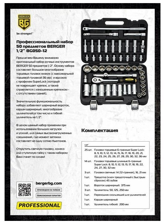 Купить Универсальный набор инструментов BERGER 50 предмета 1/2 «мёрс» BG050-12