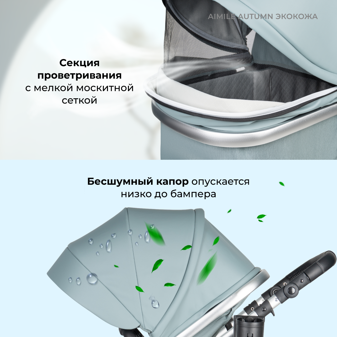 Детская коляска-трансформер 2 в 1 Aimile Original Autumn / коляска 2в1 / для новорожденных / экокожа / цвет Атлантида